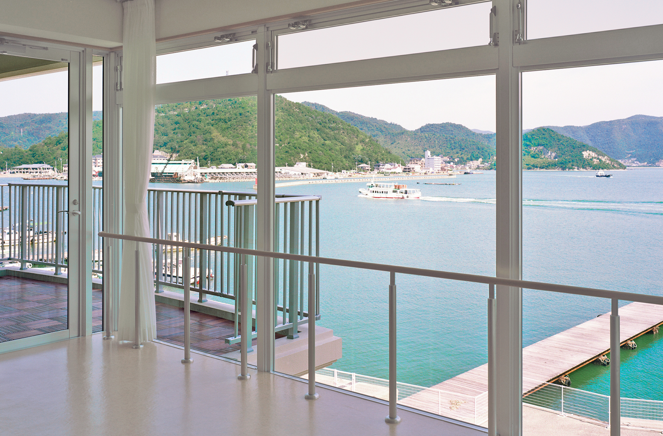 広々ダイニングは全面ガラスで解放感たっぷり。海を見ながらの食事は最高。備前♡日生大橋も一望できます。