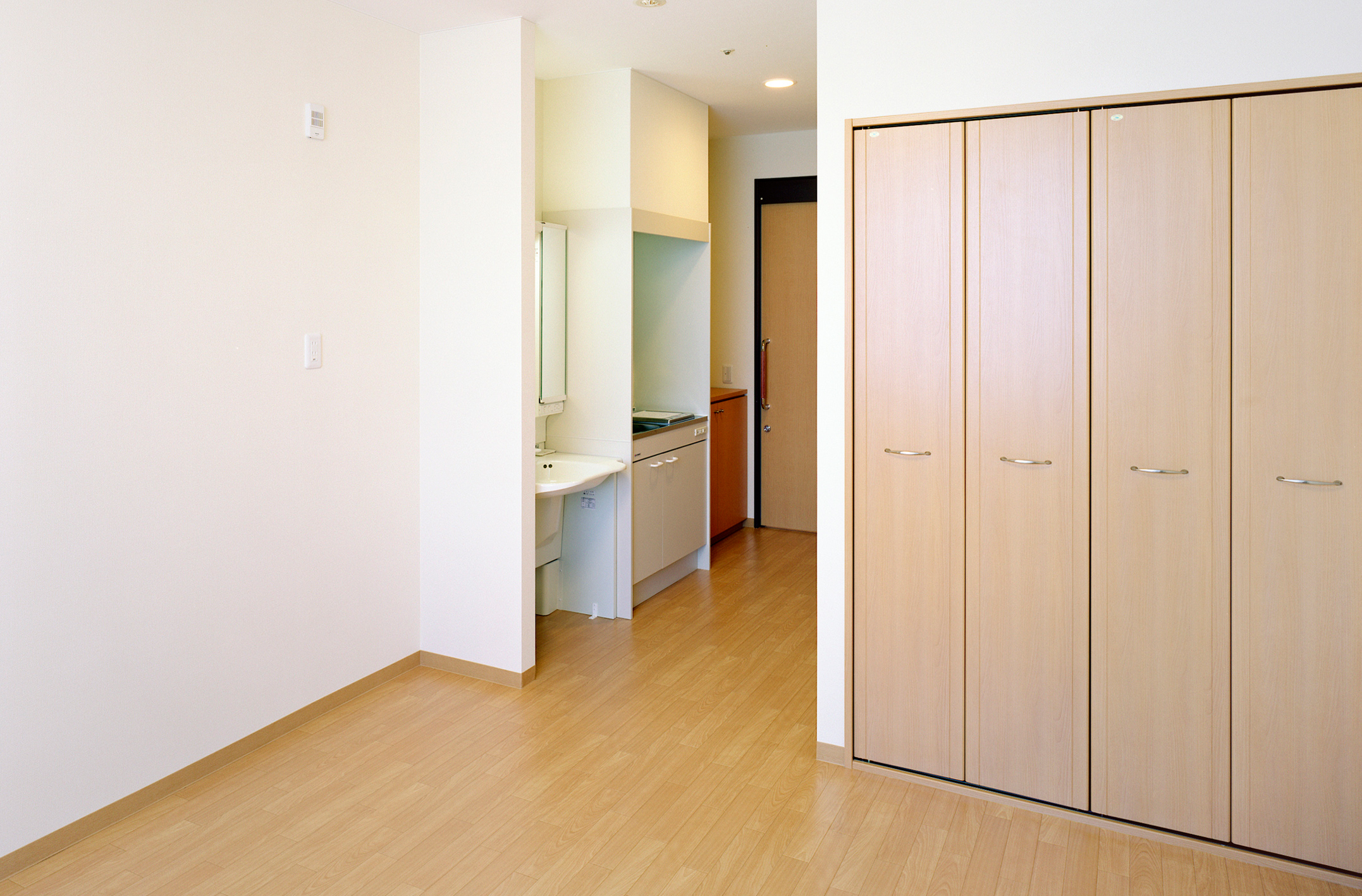 快適のための工夫が細部にまでこらされた居室スペース。 各居室内にはミニキッチン・トイレ・洗面・エアコン・クローゼットが設置され、ケーブルテレビ・インターネットにも接続できるので、プライベートな時間も快適にお過ごしいただけます。また電話も各室に設置可能なので、いつでも家族とのコミュニケーションをはかることもできます。